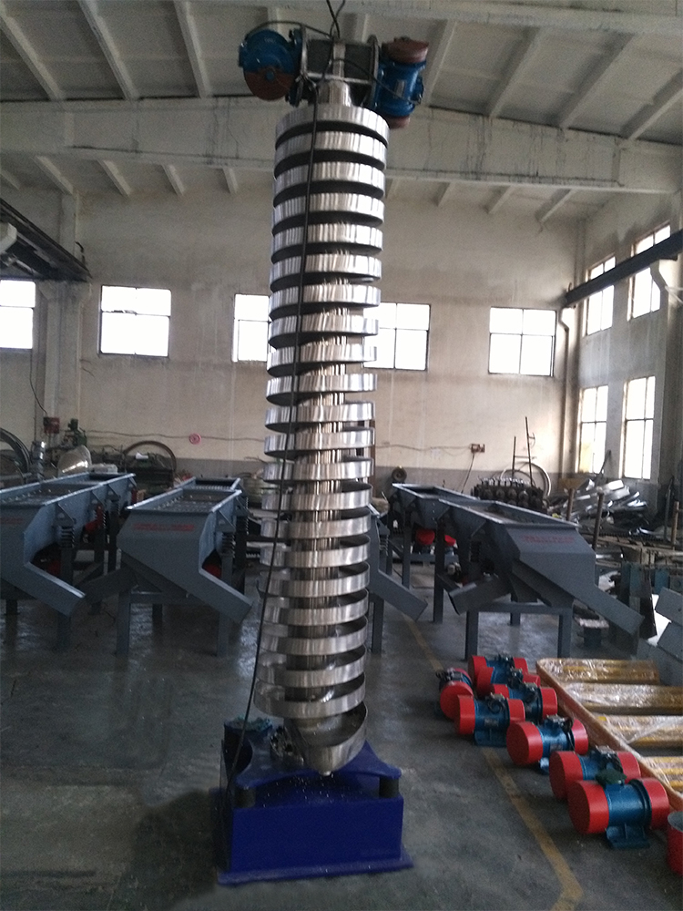 垂直振動提升機采用振動電機作振動源,利用兩臺振動電機的合成振幅,將物料沿螺旋輸送槽向上輸送。主要用于提升顆粒狀、粉狀、塊狀物料。除具有從下向上提升物料外,還可以完成對物料的干燥和冷卻。分為敞開式、封閉式兩種結(jié)構(gòu)。并可按照用戶需要進行特殊設(shè)計。